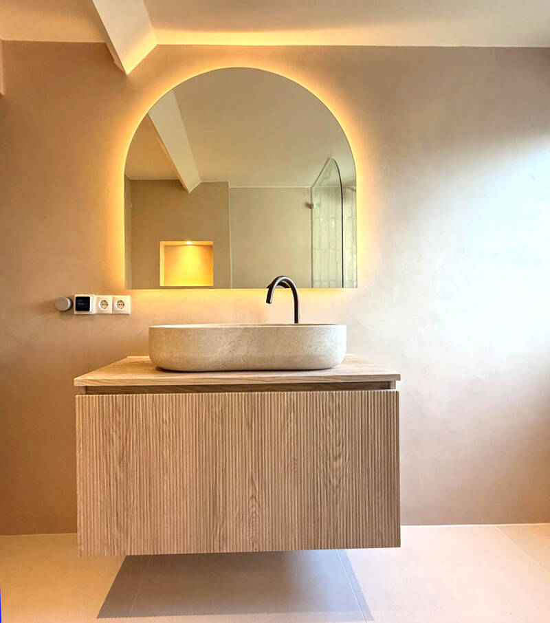 Beton ciré is de ideale keuze voor het creëren van waterdichte en duurzame oppervlakken in je badkamer. Dit innovatieve materiaal is niet alleen waterdicht, maar ook bijzonder duurzaam, waardoor het ideaal is voor het creëren van strakke en moderne oppervlakken die zowel praktisch als esthetisch aantrekkelijk zijn. Met Betonciré geniet je van een langdurige bescherming tegen vocht en waterlekkages, wat de levensduur van bijvoorbeeld je badkamer aanzienlijk verlengt. Het is perfect te combineren met tegelwerk waardoor je in stijl en uitstraling van je ruimte oneindig veel mogelijkheden hebt. Het materiaal is niet alleen eenvoudig te onderhouden, maar biedt ook een naadloze afwerking die je badkamer een unieke, minimalistische uitstraling geeft.